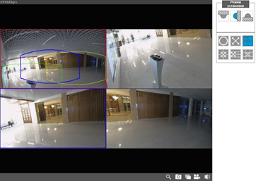 Угол обзора видеокамер с объективом типа «рыбий глаз» может достигать 180° и более. От обычных короткофокусных объективов отличается ярко выраженной бочкообразной дисторсией и искажённым отображением прямых линий в виде дугообразных кривых. В веб-интерфейсе камеры доступно несколько вариантов разделения изображения на разные участки, в зависимости от способа крепления видеокамеры (потолок, стена, горизонтальная поверхность).