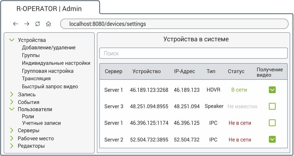 Добавлен новый функционал, позволяющий с любого ПК в локальной сети производить полноценную настройку всей системы без установки на рабочую станцию обычного клиента R-OPERATOR. Web-админка полностью повторяет его функционал и расположение элементов интерфейса. Реализована возможность полноценного взаимодействия с Linux версией R-OPERATOR.