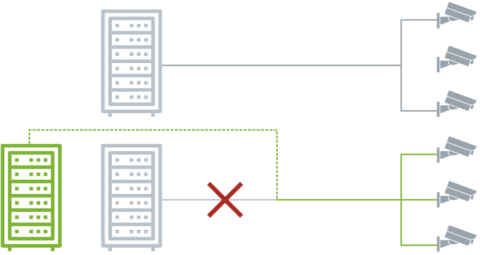 Надежность и доступность данных являются ключевыми аспектами успешной работы любой организации. Теперь можно назначить резервный сервер, который автоматически возьмет на себя функции основного в случае его выхода из строя. Это гарантирует непрерывный доступ к данным с рабочих мест: к онлайн-просмотру, видеоархиву, событиям в системе и другим важным функциям.