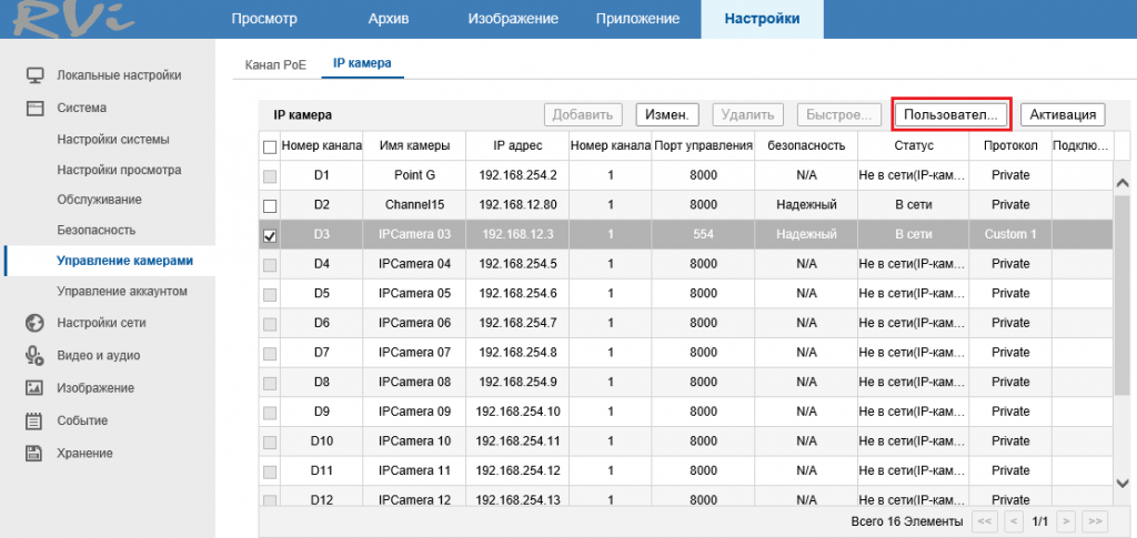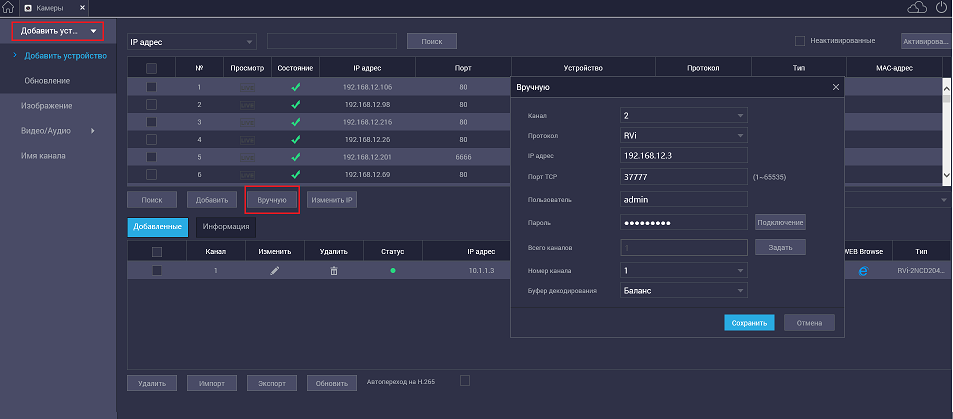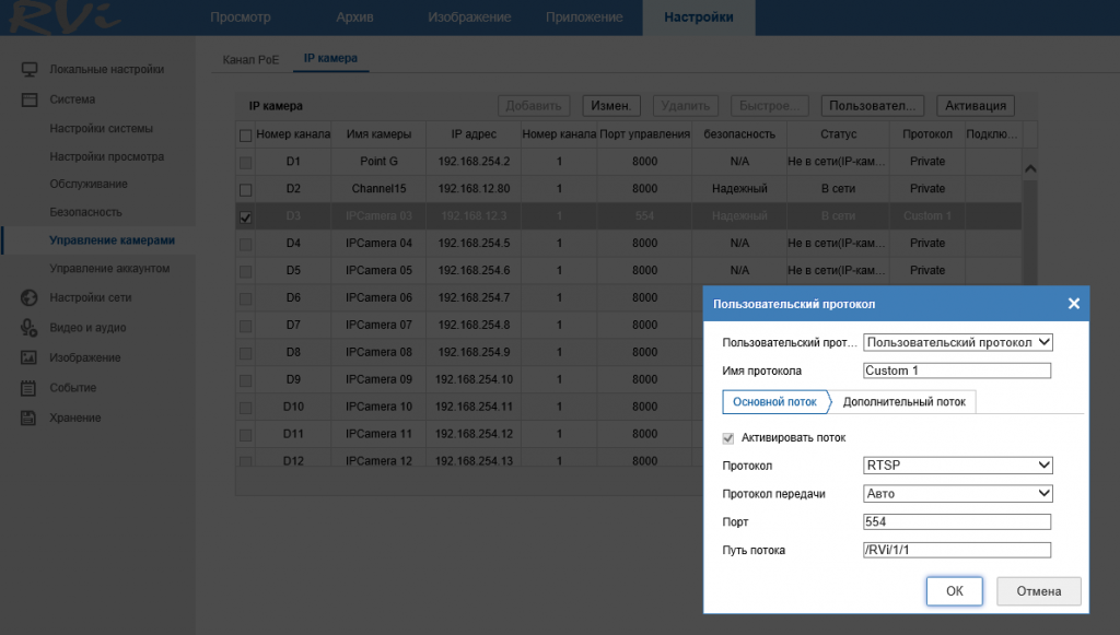Добавление устройств по протоколам Private, Onvif и RTSP в регистраторы