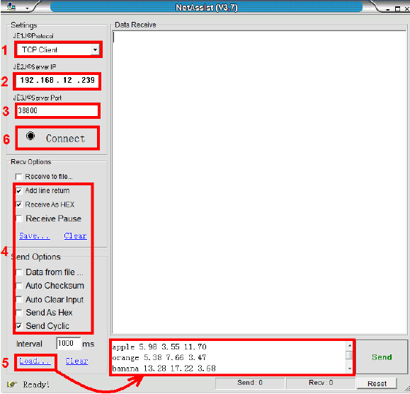 4. Установите флажки в полях: «Add line return», «Receive As HEX» и «Send Cyclic».