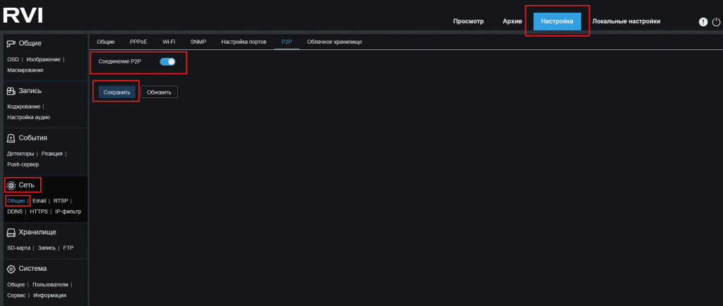 Настройка p2p подключения на камерах RVi-1NCMW2028